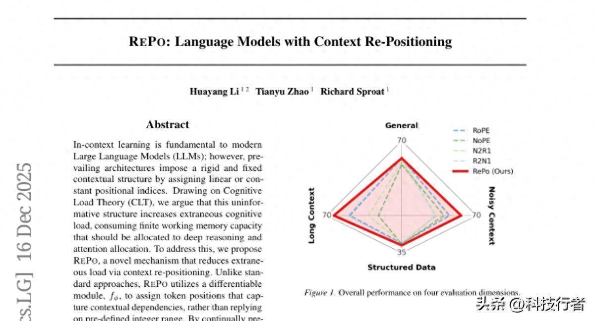 当今,如果让你读一册狼籍的书,内部的章节毫无行径,进军信息被无关内容包围,你会若何办?大多数东谈主会自关联词然地重新整理这些内容,把联系的部分归类,把进军的信息提到前边。但是,现时的大谈话模子却无法作念到这少量——它们只可按照预设的固定行径来处理文本信息。这项由日本Sakana AI公司的李华阳、赵天宇和Richard Sproat共同完成的筹商,于2024年12月发表在预印本平台arXiv上(论文编号:2512.14391v1),淡薄了一种名为REPO(Re-Positioning)的创新方法,初次让大谈话模子赢得了重新组织高下文信息的武艺。