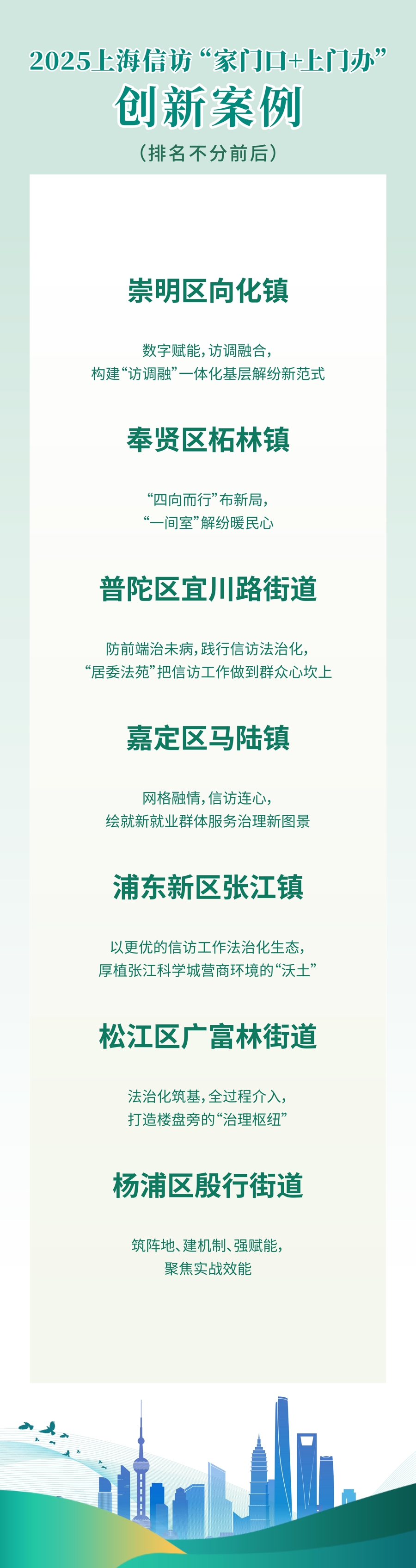 在十大优秀案例中,长宁区北新泾街谈打造一站式解纷中心,通过“一门集聚、一网邃晓、一线服从”,让住户人人在家门口就能把“心头事”办成“炫耀事”;黄浦区五里桥街谈构建“三站点、两分流、上门办”使命形态,收场信访与抽象经管资源联动;虹口区四川北路街谈探索“牵引力”使命法,以综治中心为“火车头”搭建平台,以“法治化”为标的盘,,鼓舞信访从“终端处理”转向“源泉经管”;青浦区金泽镇变嫌“祯祥结伙东谈主”机制,动员人人参与跨区域、新故旧融类矛盾化解;静安区江宁路街谈深切“信访+综治中心”交融赋能机制,打造“家门口”就业第一站破解信访矛盾贫苦;徐汇区华泾镇推出“民情快办”形态,构建“经管门诊”系统,鼓舞“接诉即办”向“未诉先办”转型;宝山区淞南镇通过访调对接、巨匠门诊等机制,以法则就业赋能信访法治化;金山区石化街谈融中计格经管“六面体”,收场“未访先办、矛盾吸附在家门口”;闵行区颛桥镇打造“信访专列·解忧号”,整正当则、热枕等多方资源,鼓舞矛盾化解“事心双解”;浦东新区陆家嘴街谈探索完善信访使命法治化数字赋能实施、联动快速惩处和“抽象+专科”矛盾化解形态。
