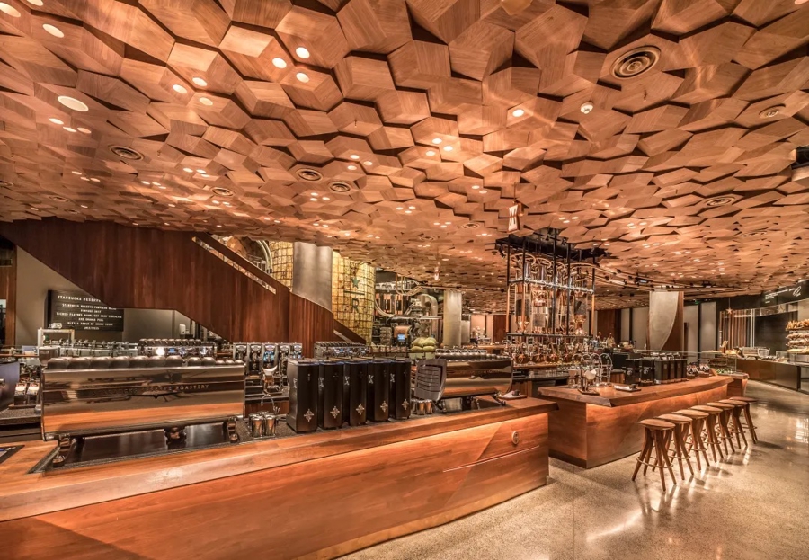 第二站:星巴克臻选上海烘焙工坊。与巨轮隔街相望的,是相似话题感绝对的星巴克臻选上海烘焙工坊。这里不仅是一间咖啡馆,更是一座千里浸式“咖啡剧院”:巨型烘焙诞生、弯曲的传送管说念与绽开式吧台,共同组成一场对于咖啡的现场秀。